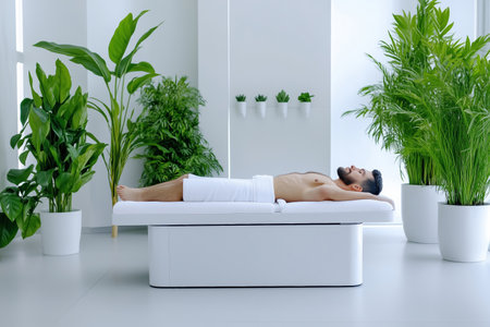 Relaxation and pampering at spa with empty massage table