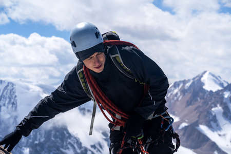 Young man is engaged in mountaineering.