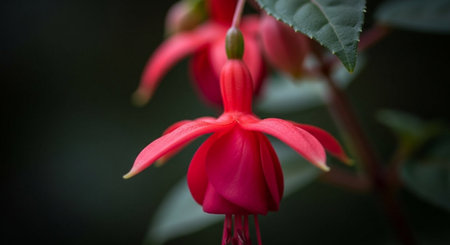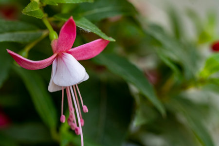 Fuchsia flowers in the garden, selective focus, shallow DOF.