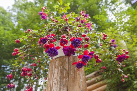 beautiful bright fuchsia flowers in a summer sunny park or garden
