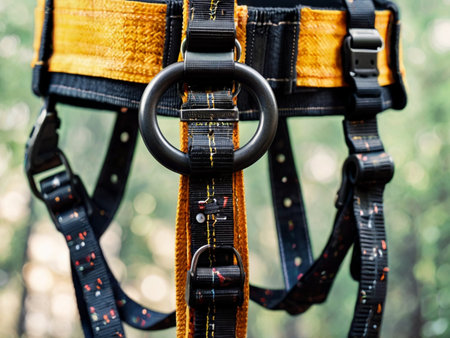 Construction safety equipment for work at height, safety harness and a seat belt closeup. Generative AI