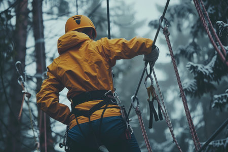 climbing ropes coiling process captured in close-up mode, created with generative ai