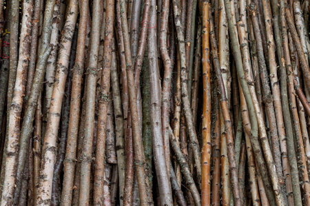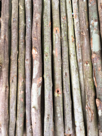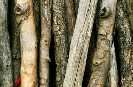 armful of wooden sticks with bark as a rustic background