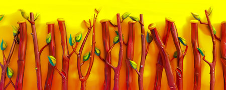 Vibrant Yellow Background with Stylized Red Branches and Green Leaves Illustration AI Generative
