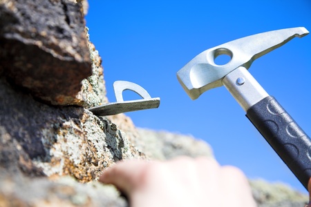 climbing iron and climbing hammer with in the rock