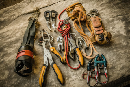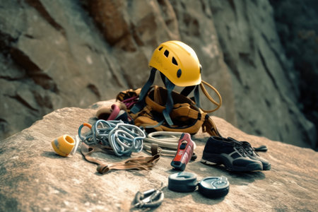 rock climbing tools and equipment photoraphy Generated AI