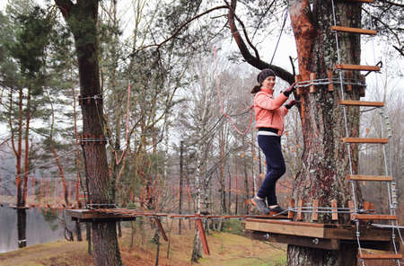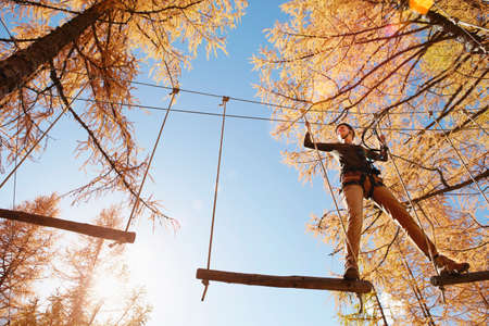 Teenage girl climbing in adventure park