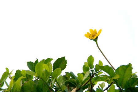 Green leafs and yellow flower with white background for text