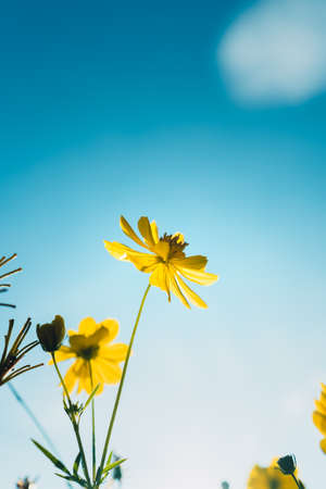 yellow Cosmos flower and blue sky