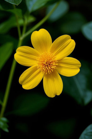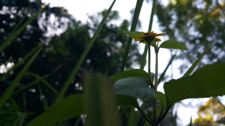 Side shot Of Wedelia Flower ,Foliage, Selective Focus,Moody Theme..