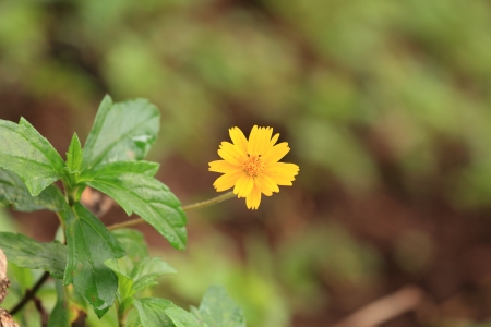 Yellow flower on green leaf