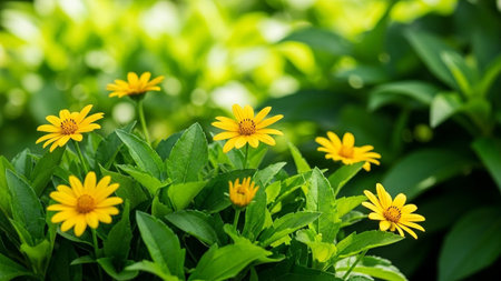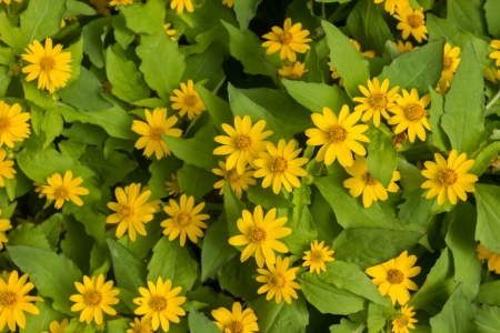 Yellow flowers on green leaves