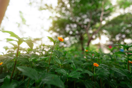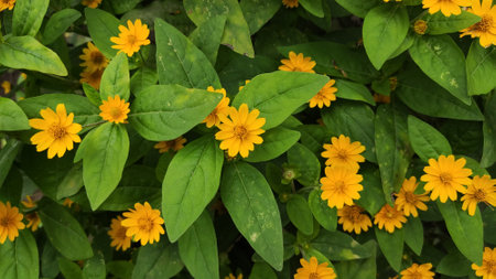 Top shot of Wedelia Flower ,Foliage, Selective Focus, Moody Theme..