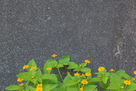 Green leaves and yellow flowers background. Top view of green leaves and yellow flower background.