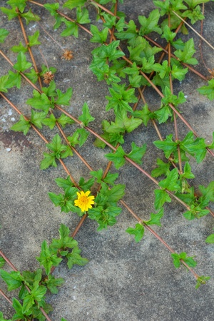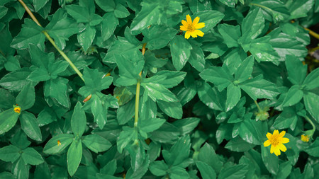 Nature Minimal Concept - Green Leaves Background with small little yellow flower;