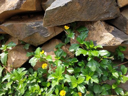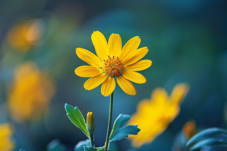 Yellow flower with green leaves, close-up view. Nature and tranquility concept