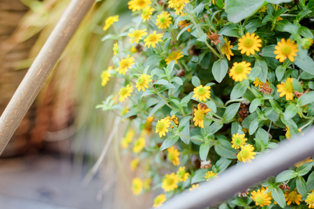 Little Yellow color Star flowers in a public flower garden.