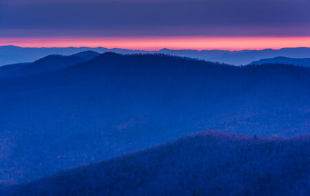 Sunrise over the Blue Ridge Mountains from Blackrock Summit in Shenandoah National Park, Virginia.