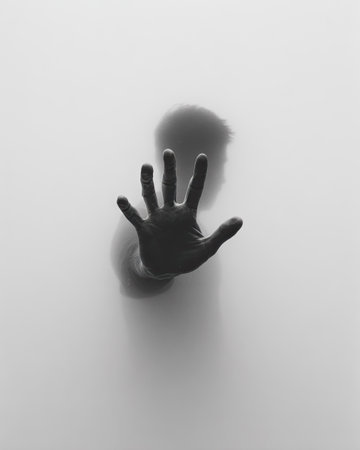 An outstretched hand to the silhouette in the fog against the background of emptiness