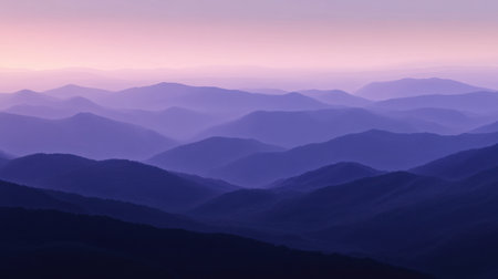A breathtaking view of mountains layered in soft blues and pinks, evoking tranquility and calmness in nature. Perfect for relaxation or travel themes.