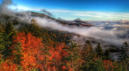 Fog covers the valleys of the Great Smoky Mountains