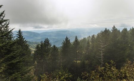 Richland Balsam Overlook on a foggy day on the Blue Ridge Parkway, NC, USA