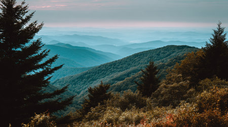 Wide-framed Wilderness. Great Smoky Mountains National Park. View from Clingmans Dome. Natural beauty background with picturesque copy space.