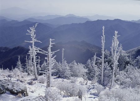 View from Clingman's Dome in the Great Smoky Mountains National Park near Gatlinburg, Tennessee.