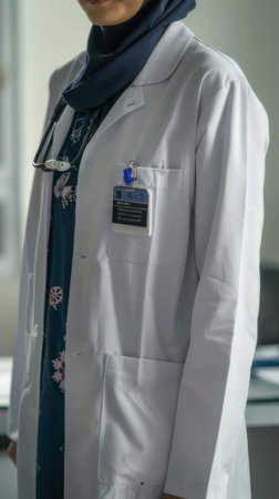 A close-up of a medical professional's ID badge clipped to a lab coat, emphasizing trust and expertise in healthcare
