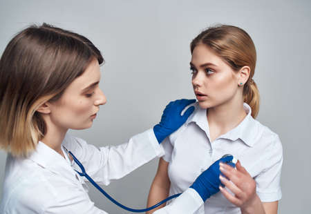 female doctor patient examination health care light background