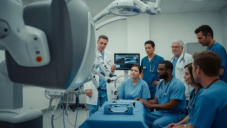 Medical professionals collaborated in a focused environment, strategizing during a significant surgical procedure in a hospital setting.