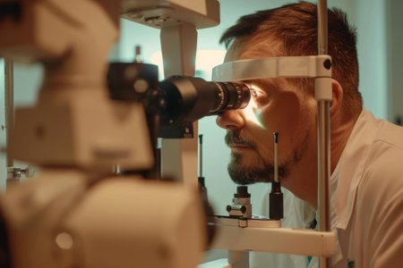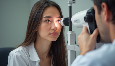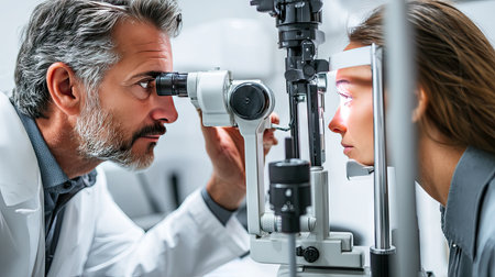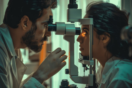 A doctor carefully examines a patient's eyes using advanced ophthalmic equipment in a modern clinic, highlighting the importance of eye health and regular check-ups.