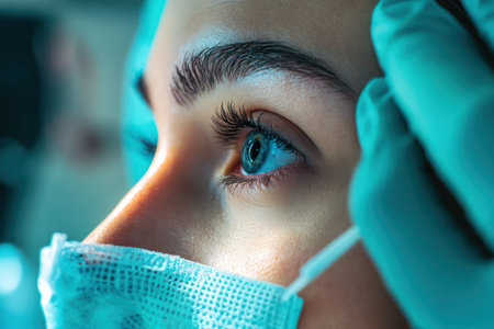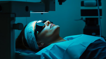 Patient undergoing laser eye surgery in a modern medical facility during daytime hours