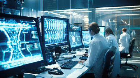 Healthcare expert examines brain MRI in a high-tech lab. advanced medical diagnostics at work. A.I.