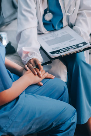 Multinational Medician Consultation. Head Doctor Discussing. Information On Paper Desk. Medical Teamwork Connection. Clinician Team Group. Hospital Diagnostic Meeting. Physician Assistants.