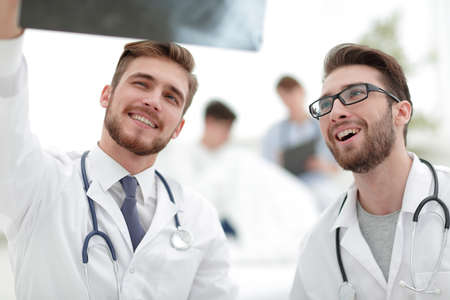 Doctors stand in the office and look at x-rays