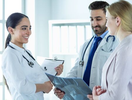 Doctors discussing patients diagnosis looking at x-rays in a hospital