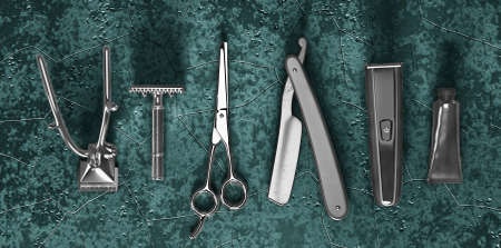 Tools for cutting beard barbershop. Male hairdresser with his equipment.