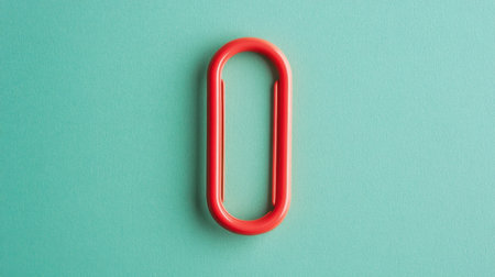 A vibrant red paper clip rests on a soft teal background, creating a striking visual. Ideal for projects that emphasize creativity, simplicity, and organization.