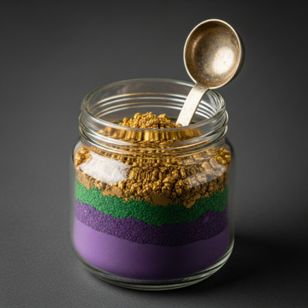 A captivating close-up of brightly colored powder spilling from a glass jar, illuminated by dramatic lighting. This vibrant scene evokes creativity and inspiration.