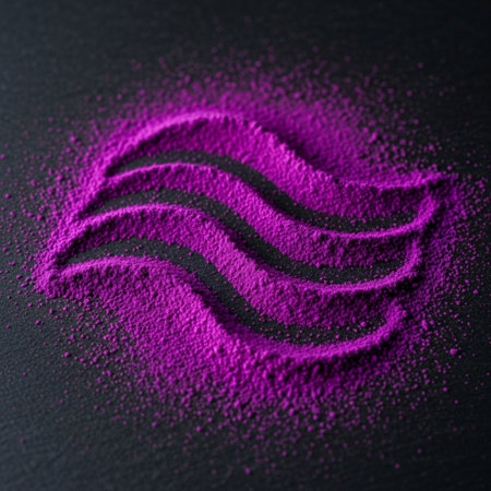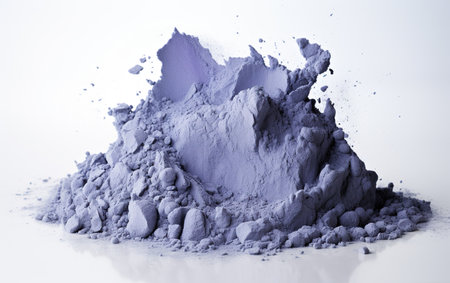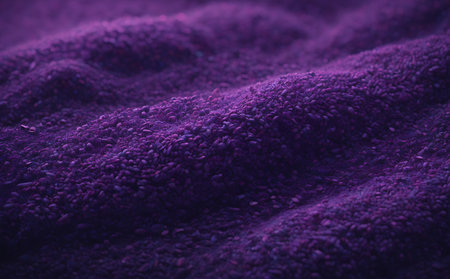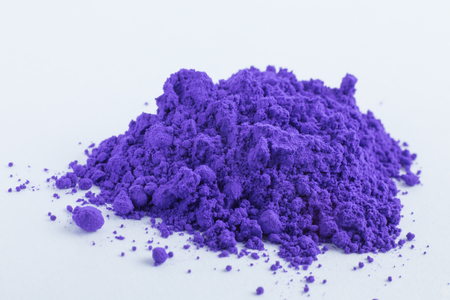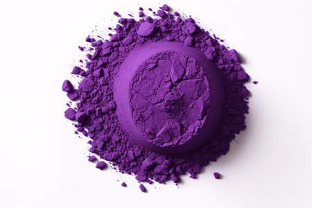 A striking close-up image of a pile of purple powder on a textured surface, showcasing vibrant color and intricate details enhanced by soft shadows for visual interest.