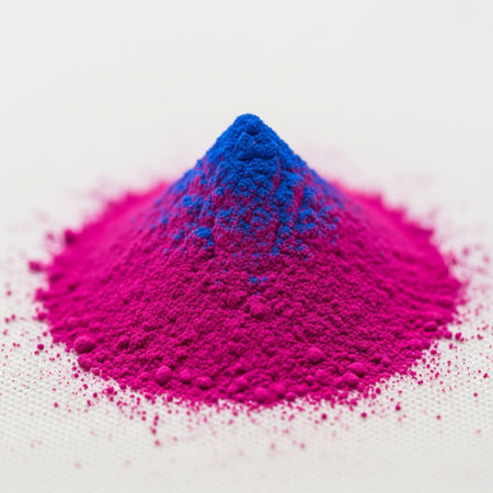 A tight, square composition focusing on an abstract arrangement of dry pigment. The hero detail is t