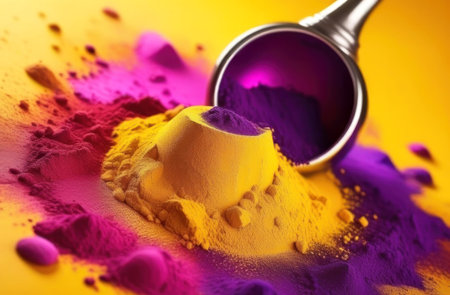 Vibrant celebration of colors with striking yellow, purple, and pink powder beautifully blended. Perfect for festive inspirations, art projects, and creative backgrounds. Generated A.I.
