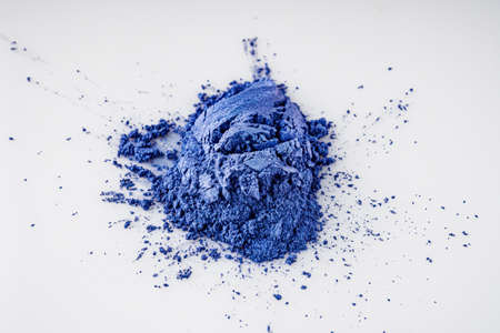 Blue eyeshadow powder in a jar close-up. Cosmetic background