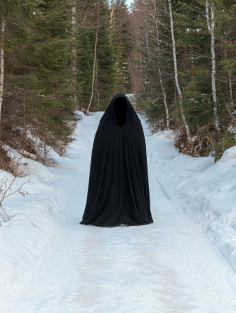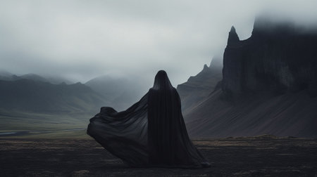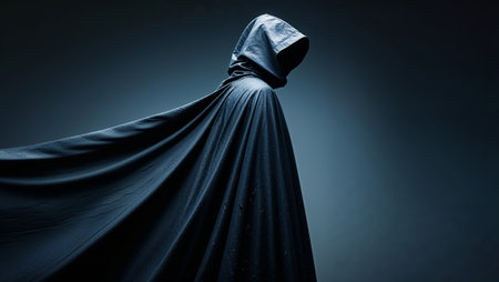 Mysterious Figure in a Dark Hooded Robe