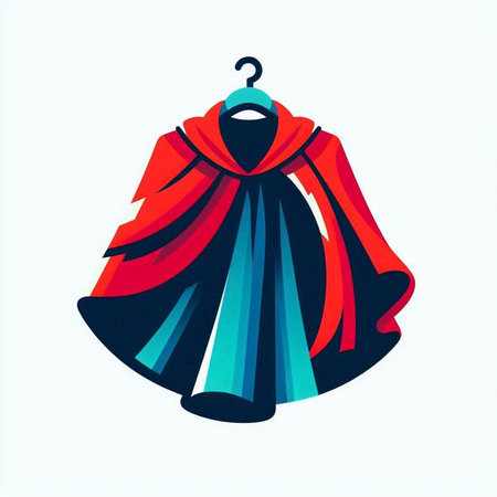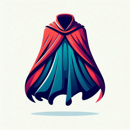 Illustration of a red and blue cape on a white background.