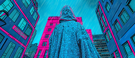 abstract colorful illustration of a man in a coat with a hood
