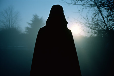 the silhouette of a person in a hooded cloak