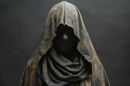 AI Generated. Mysterious Figure in a Dark Hooded Cloak