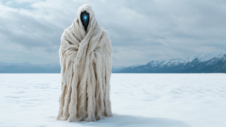Mysterious figure in winter landscape
